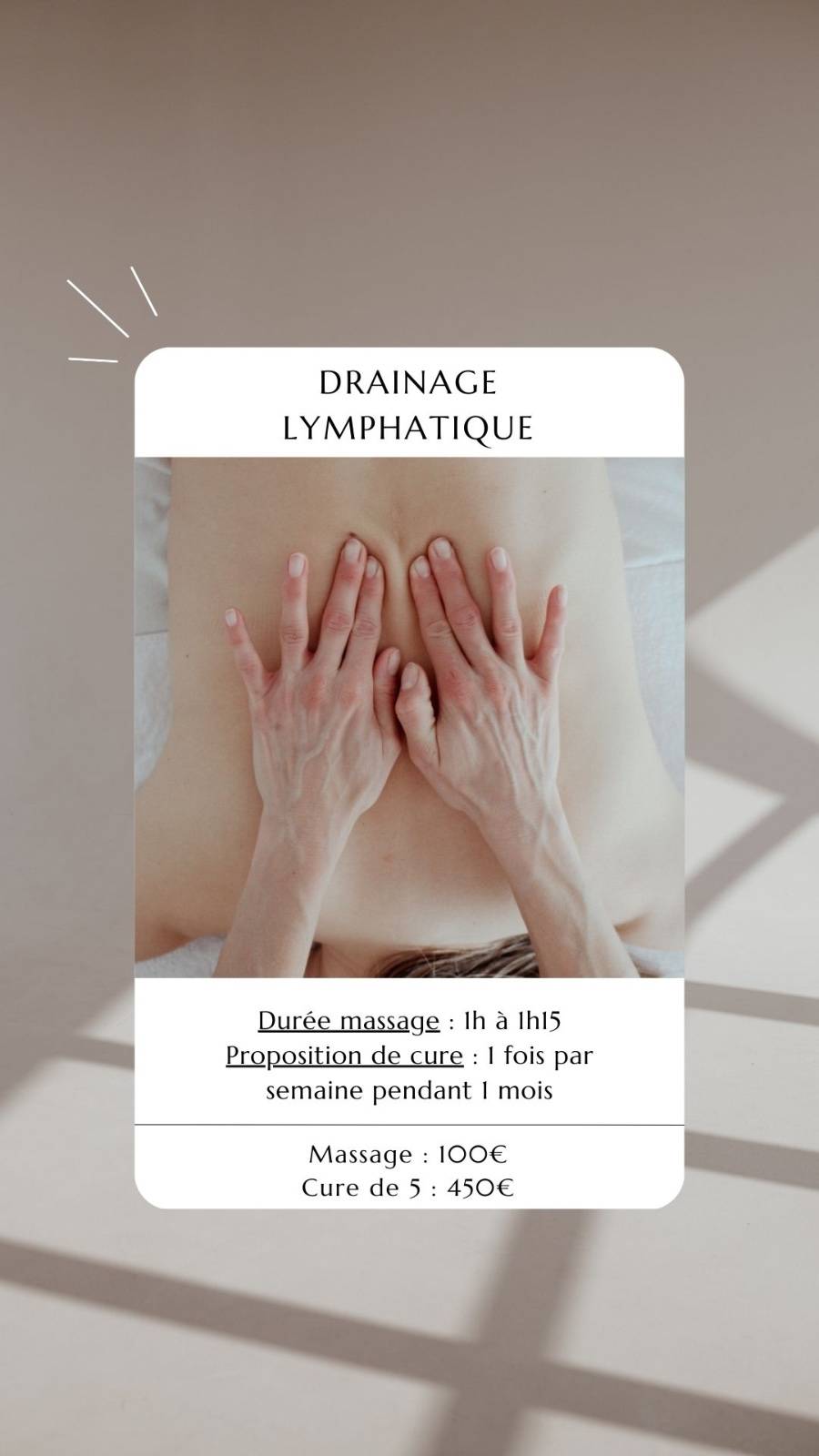 Pour alimenter la création d’un book de formation pour une masseuse, il était nécessaire de réaliser un shooting photos de différents éléments. Elle-même, certains gestes ou des positions spécifiques tout doit figurer dans ce shooting.