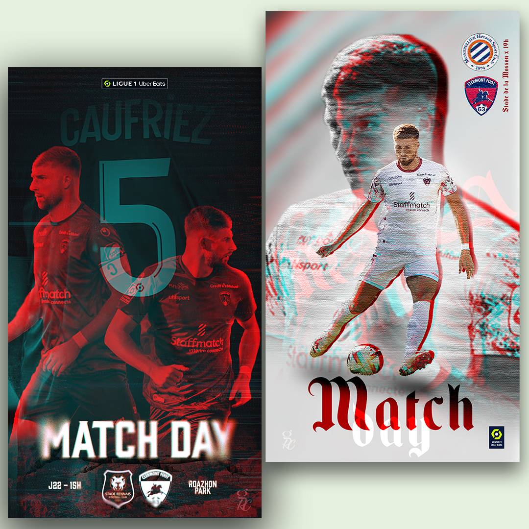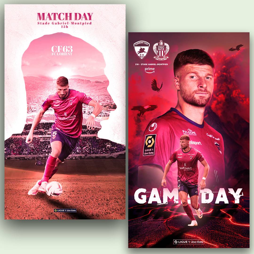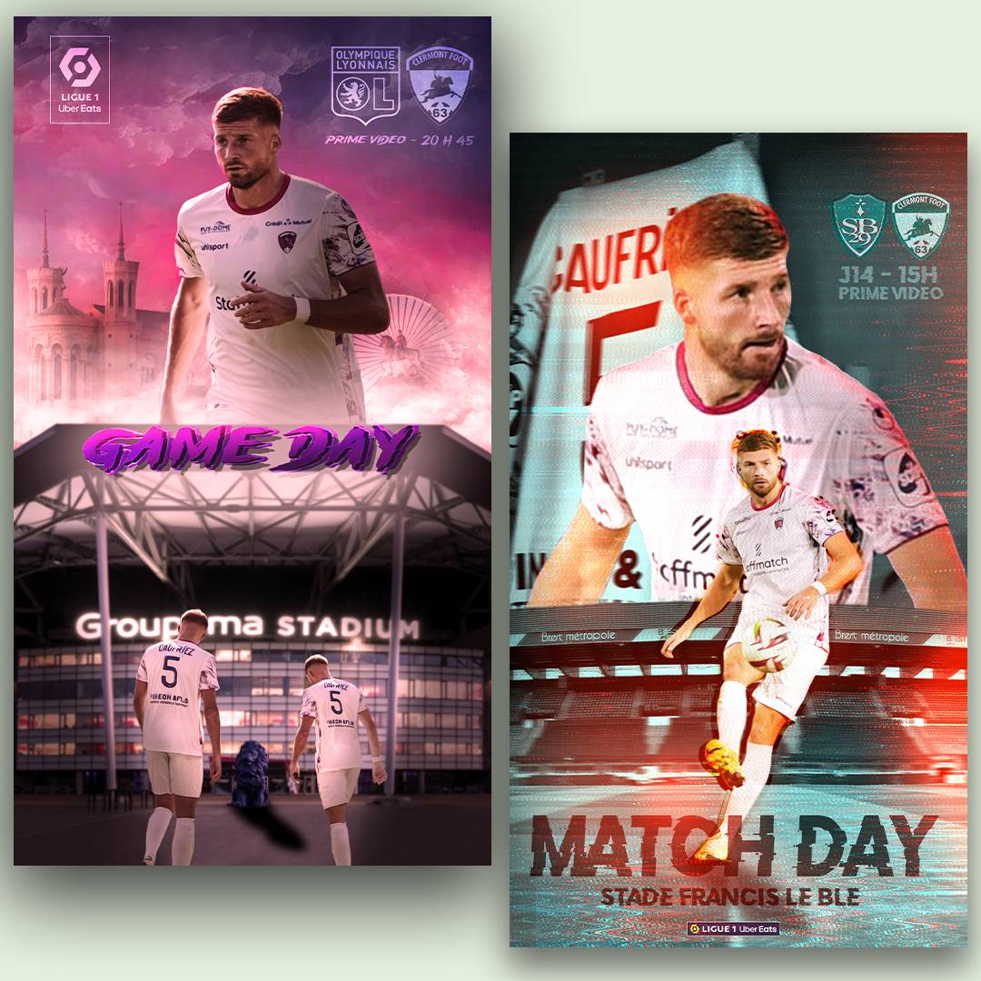 Création des visuels réseaux sociaux, appelé “Match day” pour un footballeur évoluant en Ligue 1 UberEats au club de Clermont Ferrand.
